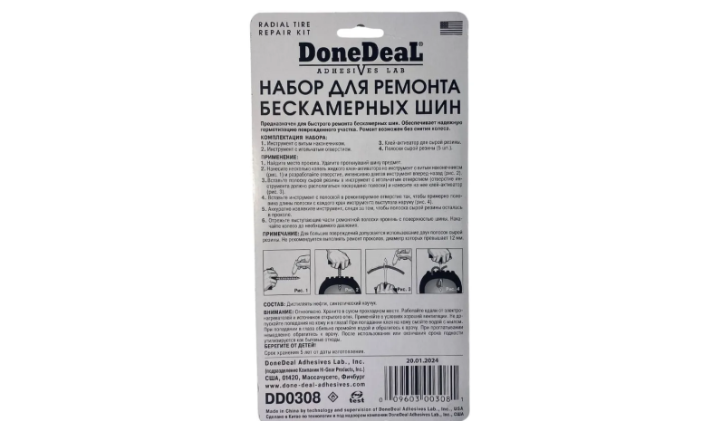 Набор для ремонта бескамерных шин DD0308, ремкомплект для шин 4 предмета [9664]